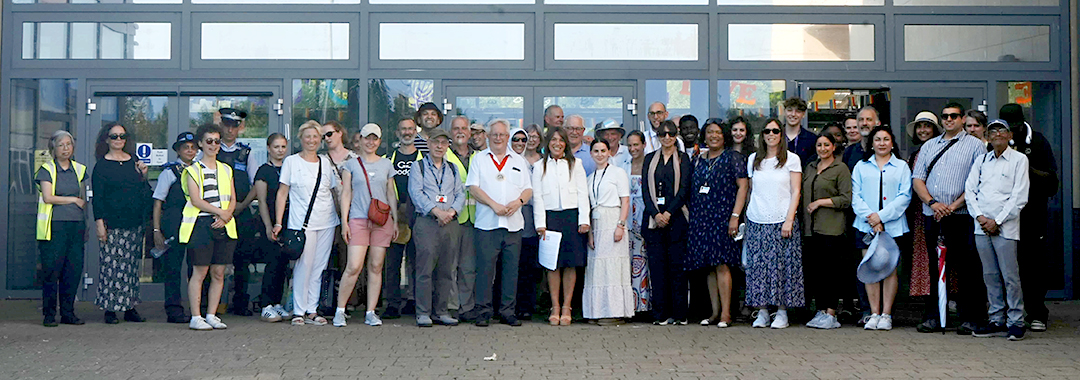 On one of the hottest days of the year, residents and friends of all faiths and none came together for the fourth annual New and East Barnet Faith and Peace Walk, co-organised by Barnet Multi Faith Forum (BMFF) and Middlesex University Inter Faith Network. Mayor Cllr Danny Rich and Deputy Lord Lieutenant Martin Russell MBE, plus Councillors of all parties and officers were also in attendance.