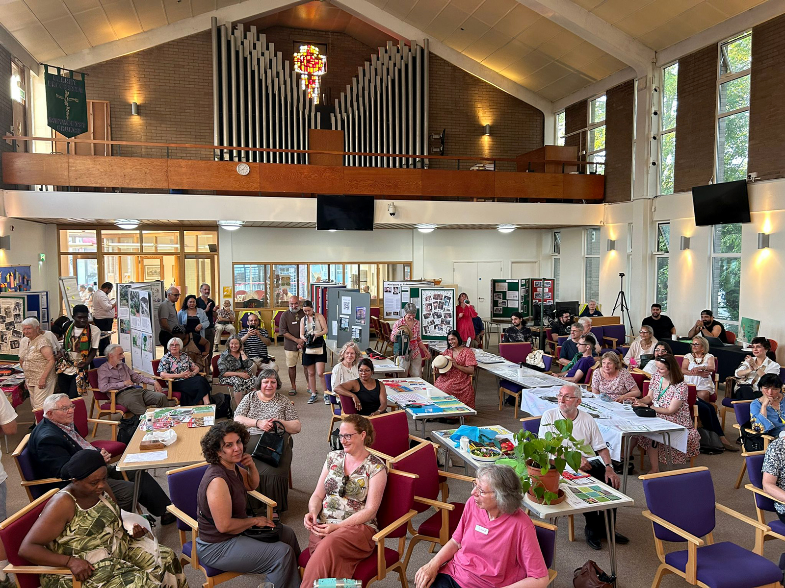 The warm hospitality and openness of staff at JCoSS, the Jewish school rooted in pluralistic values, truly reflected the spirit of the day and this generosity was echoed by all the places of worship we visited along the route, including Kingdom Hall of Jehovah’s Witnesses and Lyonsdown Hall. The final stop was at the deeply welcoming Brookside Methodist Church, where we heard from community leaders about interfaith initiatives, and many volunteer organisations exhibited their amazing work in the community, including the Community Quilts, which were on display to mark Refugee Week.