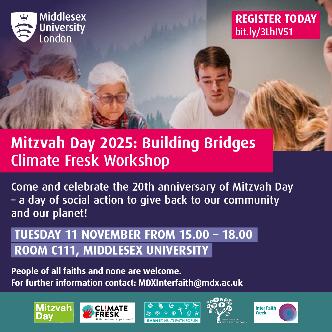 Event categories Dialogue/discussion, Education/learning, Environment/ climate event, Higher or Further education, Interfaith Mitzvah Day, Social action or social issues