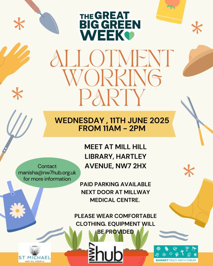 The Great Big Green Week – Allotment Working Party Date: June 11, 2025Time: 11:00 am - 2:00 pmLocation: Meet at Mill Hill Library NW7 2HX Posted in .